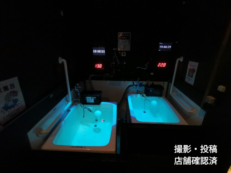 ビジホのバスタブ程度の浴槽が2基。14℃程度と23℃程度の2温度。