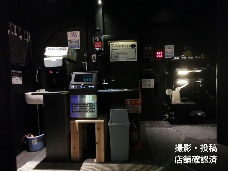 ブスブスという蒸気の噴出音と、専用遠赤がある三角形のエリア。温度は92℃とメインエリアと大差無いが刺すように熱い🔥6分程度で水風呂へ避難💦