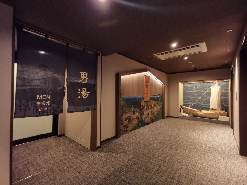 脱衣所に入ると浴室側から大きめの話し声が聞こえる。おおっと今日はこんな連中と相席か💧多分彼ら以外の客は居ないのだろうが