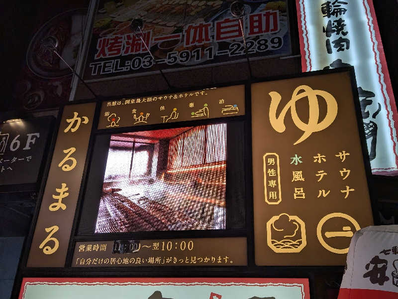 洗体してまず目に入ってきたのが蒸サウナ。順番待ちと思いきや誰もいない。早速入る、、、熱くて出る。