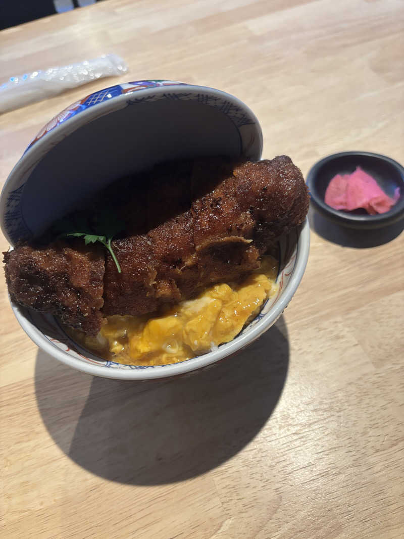 ごっついカツをたまごでとじす蓋も閉じれずのとじないカツ丼 盛り具合じょーず😊