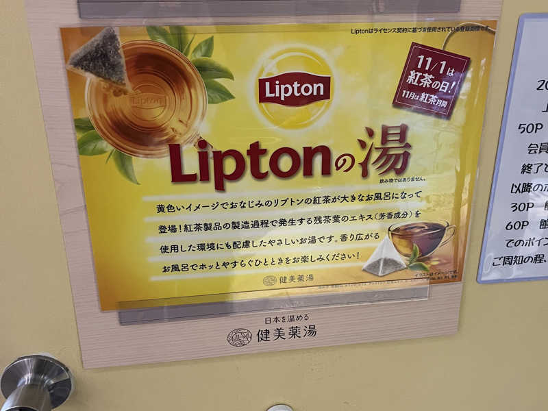 日替わり湯が「リプトン湯♨️」なるもので、紅茶の香りが心地よい☺️11/1は紅茶の日なんですって😳