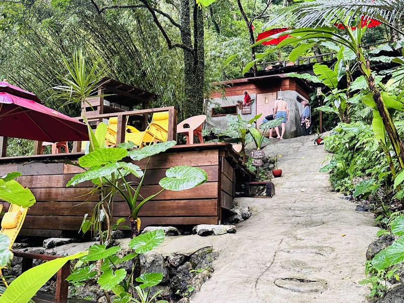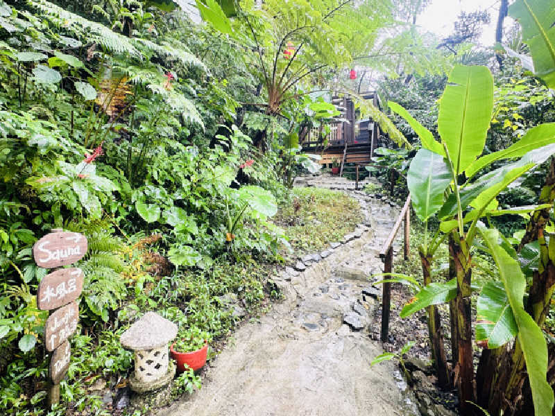 ポンチョを着て入るサウナはガラス張りなので開放感がある。