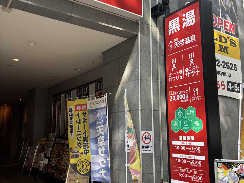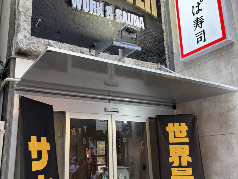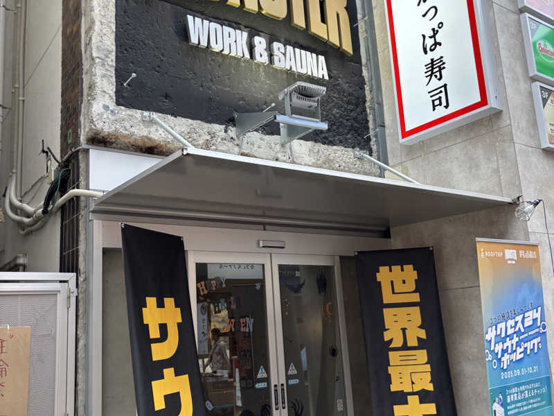 久しぶりにモンスター。入口には「世界最大級サウナ」の旗がなびいている。そこまで大きなサウナ室だったかな?という気もするが、他にこれより大きなサウナ室も思い浮かばないのでそうなのかもしれない。