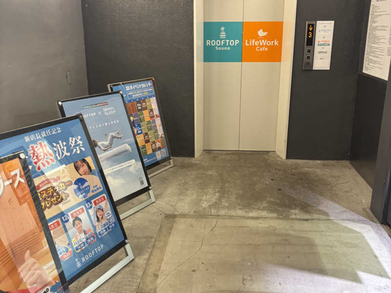 メインサウナも屋上のセルフロウリュサウナも前行ったときは息をすると鼻の奥が焼けるんじゃないかという温度だったのが、万人受けする温度に下がったような・・。