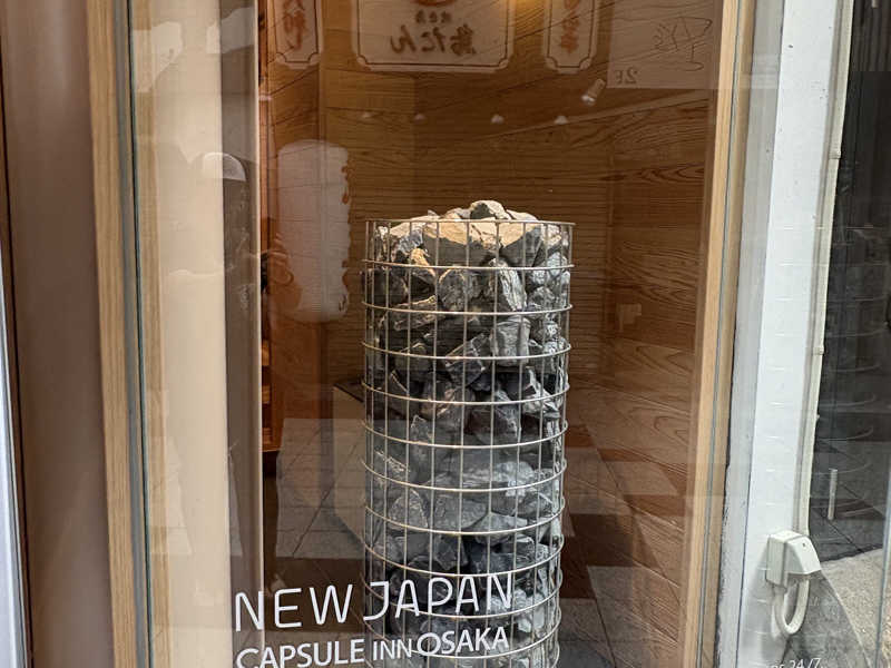サ室のオートロウリュは1回で霧状に噴霧されたアロマ水がストーンにかかり、かなりの熱気がくる仕様であった