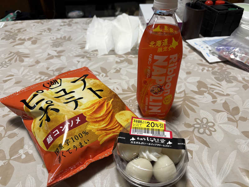 17:45に仕事が終わり、弁当とお菓子・飲み物を買って18:45にホテルに帰ってきました🚗