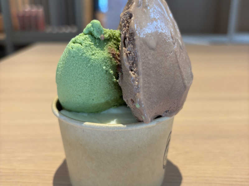 平日の昼間だったからか浴室もサウナも余裕があり、サウナは1人だけのタイミングも。サウナの奥の壁はガラス越しに緑が広がり、石造りの落ち着いた空間。オートロウリュのタイミングには出会えなかったけど、静かなB.G.Mが流れていて寛げました。深めの水風呂、天然鉱石ブラックシリカから滴る水に頭が解れ、浴場内には普通のポカリと甘さ半分のポカリ、2種類のタンク。そして外気浴はインフィニティチェアと吊るしてある卵型の籠…。ゆらゆら宙に浮く感じと森から吹く風が心地よく、目を閉じているとどこにいるかわからなくなりそうでした。サ飯は受付と同じフロアでいただきました。凝った感じのパスタ、40分近く待ちました😅時間に余裕を持って訪れることをおすすめします。ちなみにジェラートはチョコレートと抹茶、塩バニラをいただきました。塩バニラの濃厚な旨味とさっぱりした後味、イチオシです。