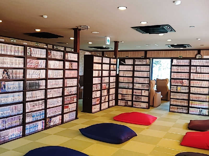 1階にもコミックが読める休憩所はありますが、本の数が少なく、足を伸ばして座りづらいので、くつろげる空間とは言えないかもしれません。