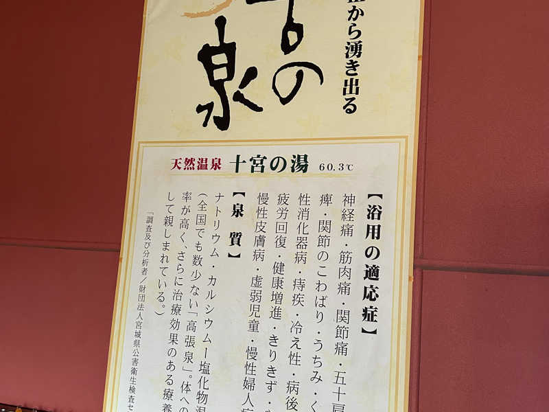身体を洗ってから炭酸泉へゆっくり浸かります。炭酸泉の効能がデカデカと書いてある看板、何回も見てるのに何故だか毎回読んでしまう(笑)時計を見ると9時15分前。伊達なサウナのオートロウリュウチャンス。時間調整して1分前に入室。
