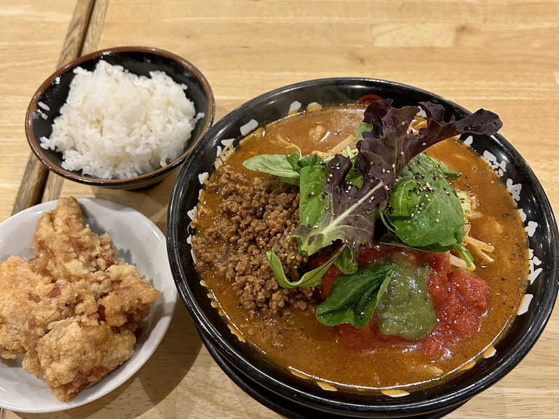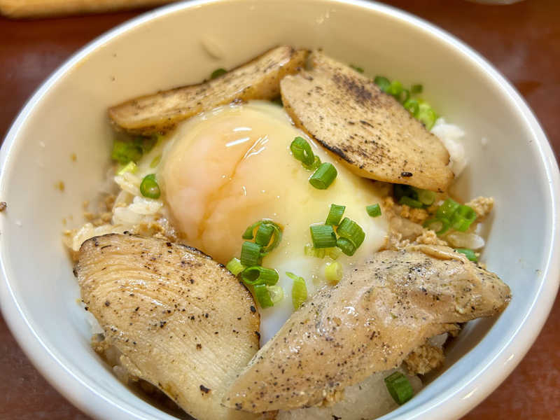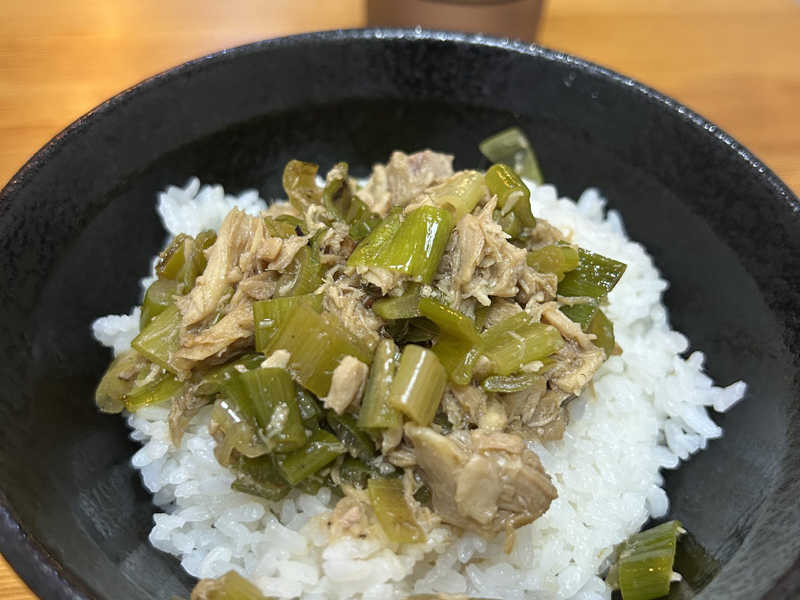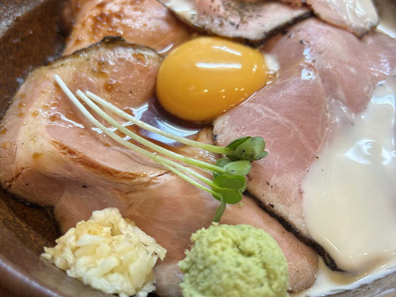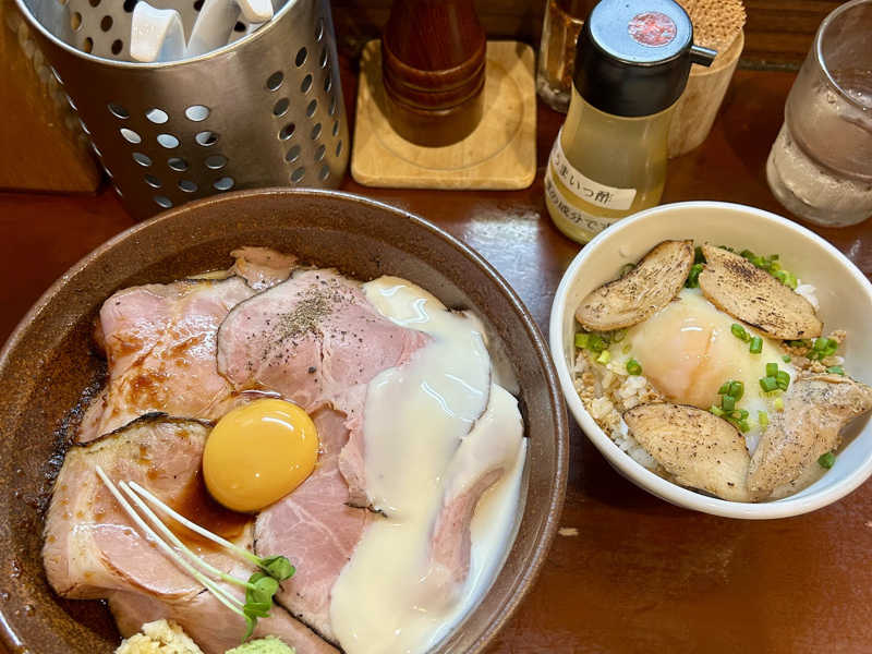 美しいビジュアル。薄切りのロースト肉が柔らかくて美味しい。まぜそばに山葵って初めての体験!この具ならではなのかめっちゃ合います。鶏飯も肉の歯応え最高。これで合わせて1,380円って物価高の昨今かなりお得なのでは❗️😇