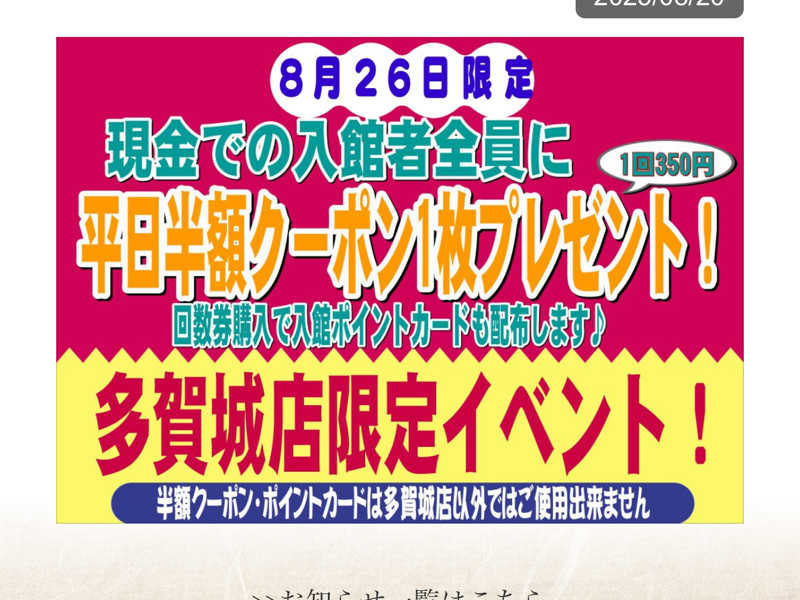 回数券あと残り3枚か…と現実を振り返っていると入り口付近に回数券特売日のお知らせ❗️よっしゃ❗️🤣買うしかないな❗️