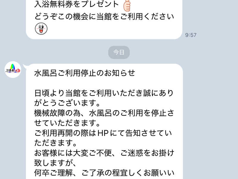 平日だし、極楽湯平日限定LINEクーポン使えるな。