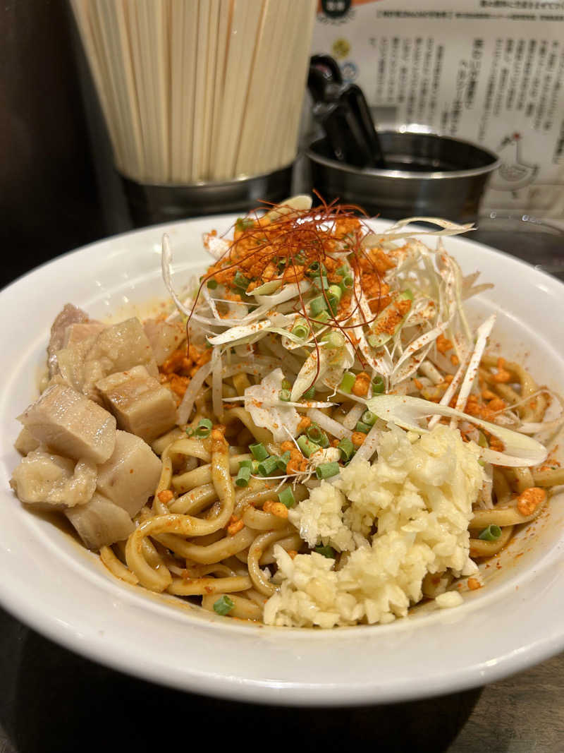 このお店G系のラーメン提供するお店なんですけど、結構いいパンチのあるメニューが多いんです😁 確かに喉が渇きそうなビジュアルですね🤣 これの汁ありバージョンは良く食べてました。そこまで激辛じゃ無いですけどちょうど良い辛さです😃