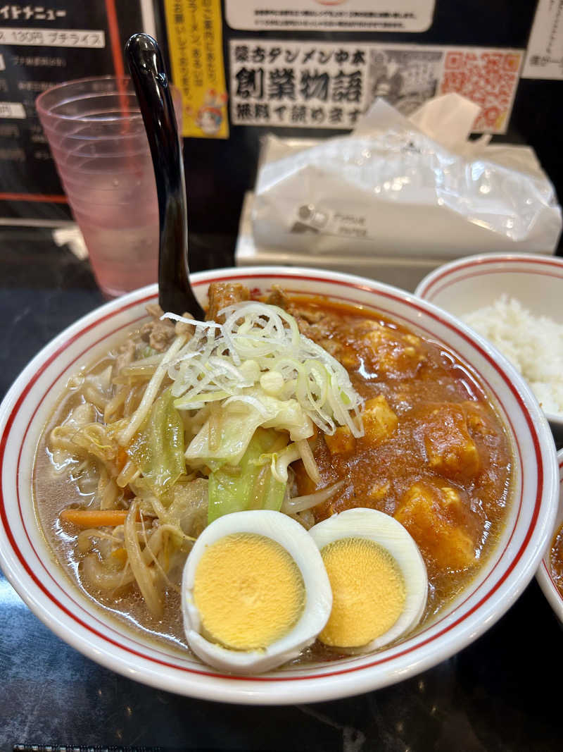 五目蒙古タンメンを野菜マシで。定食セット?ってなんだろう?も、注文。セットとは麻婆豆腐とライス小のセットでした。