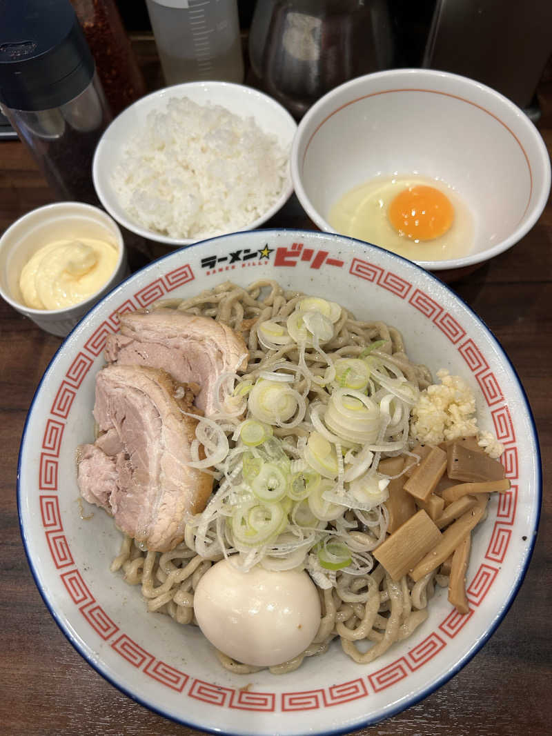 今年もよろしくお願いします‼️😀 ビリーのあの連続幟の誘惑はすごいです(笑) 迷いなく油そばでした(笑) どっしりと重みのあるまぜそばは食べ応え抜群でした😀 マウンテンデューも2本でやっと満足の量です🤣