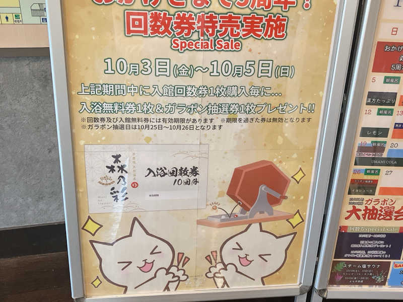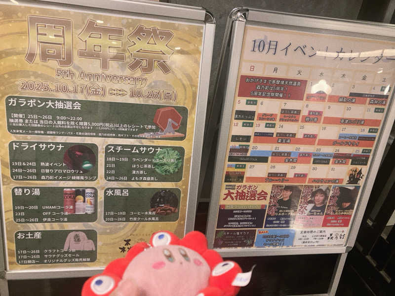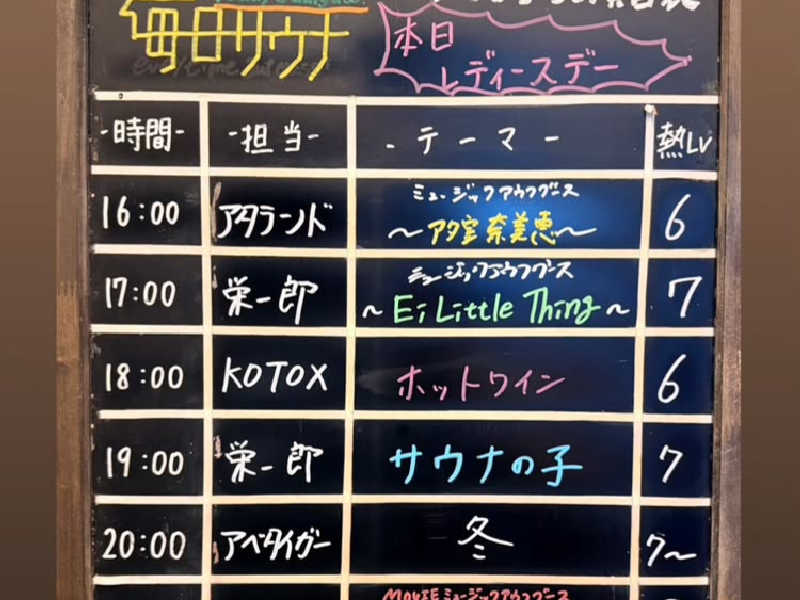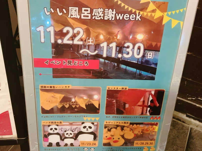 久々だなぁとは思っていましたが、遡ると最後に訪れたのはまさかの昨年11月でした。1年近くも行けてなかったとは……。何も知らず21時半頃に入店したところ、入館料が750円になるナイトサービスの適用条件が今月に限り22時→21時入館に引き下げられていて得した気分。あとぼざろコラボとかやってたのも全然知らんかった。去年季乃彩、COCOFUROとかの楽久屋系列でもやってましたね、ミュージックロウリュのない🌳は対象外でしたが。