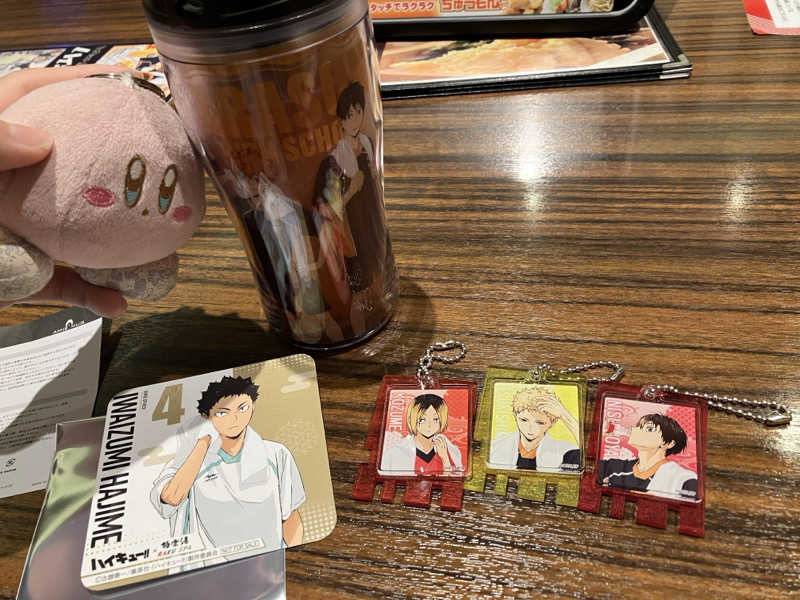 元々今日ははしごする気なかったんです、けどそういやハイキューコラボってそろぼち終わるのでは?調べると最寄りの多摩センター店含めコラボ替り湯も平日はない日が多かったり、こりゃせっかく近くに来た今日行っといたほうが無難かな?絶対欲しいグッズがあったわけじゃない(そもそも案の定ほぼ売り切れでした、妹達の分含めトレーディングアクキーのみ3枚購入)ものの、知らんVの時ばかり行って割と好きなハイキューは行けずじまいってのも寂しいし。あとモバイルバッテリーを忘れて帰るまでスマホの充電が持ちそうになく、適当なカフェとか行くくらいならRAKU SPAの快適なコワーキングスペースで充電してサウナ入って帰ったほうがコスパいいって、などとこじつけて急遽再訪が決定しました。こんなだからお金が貯まらないんだよ、まったく。