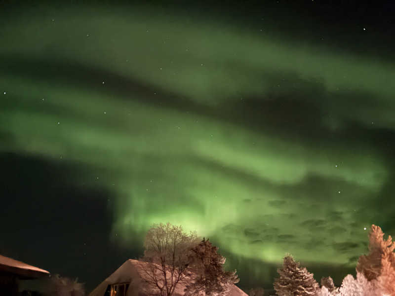 …結果!薄めでしたが見えました!50km先のイナリ湖まで行ってくれました。湖面に写るオーロラってのも良きですな〜寒すぎて死ぬかと思いましたが笑 ハーランド似のJoniさん、ありがとう😊キートス!