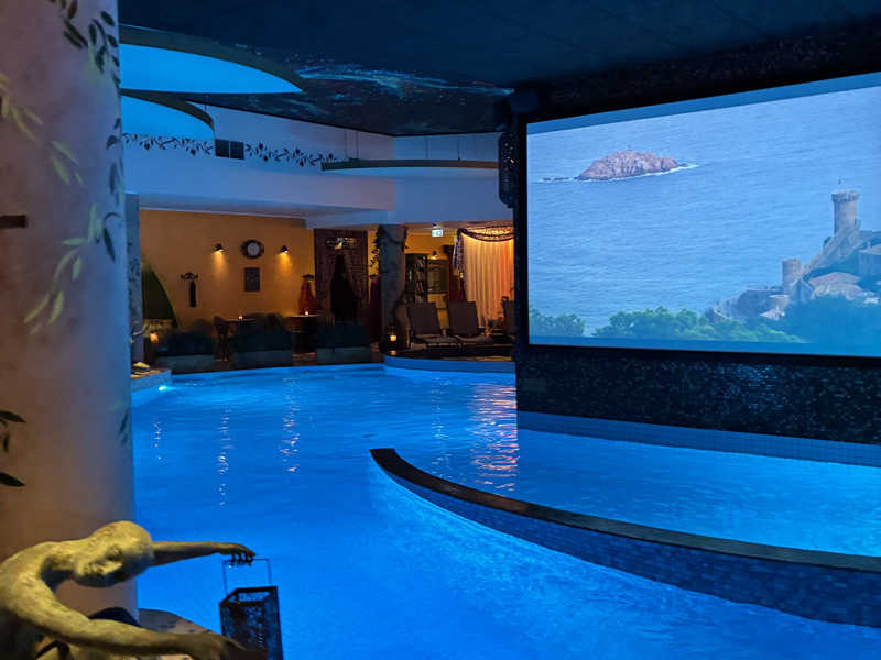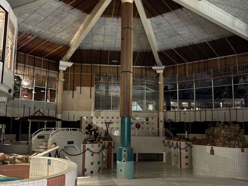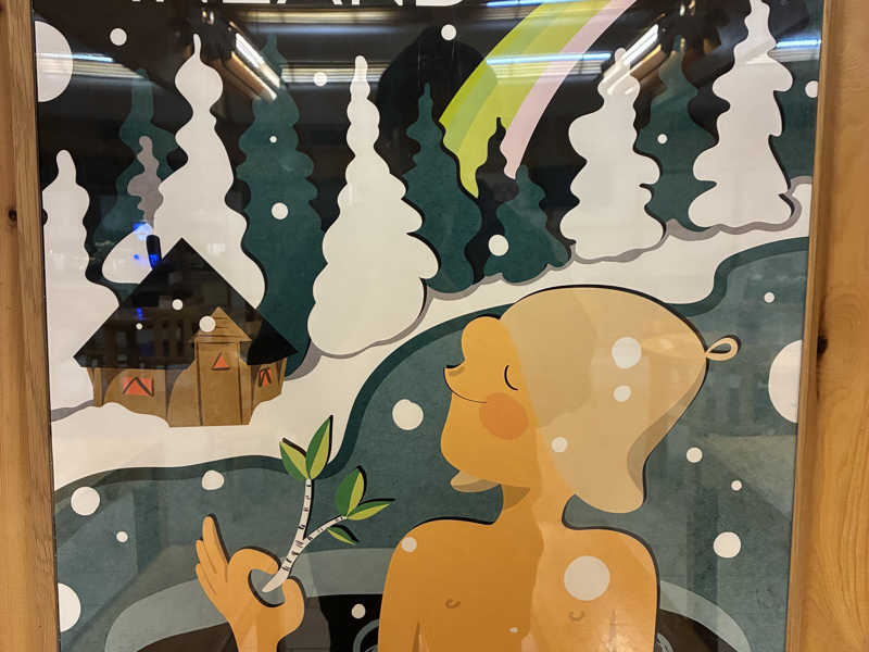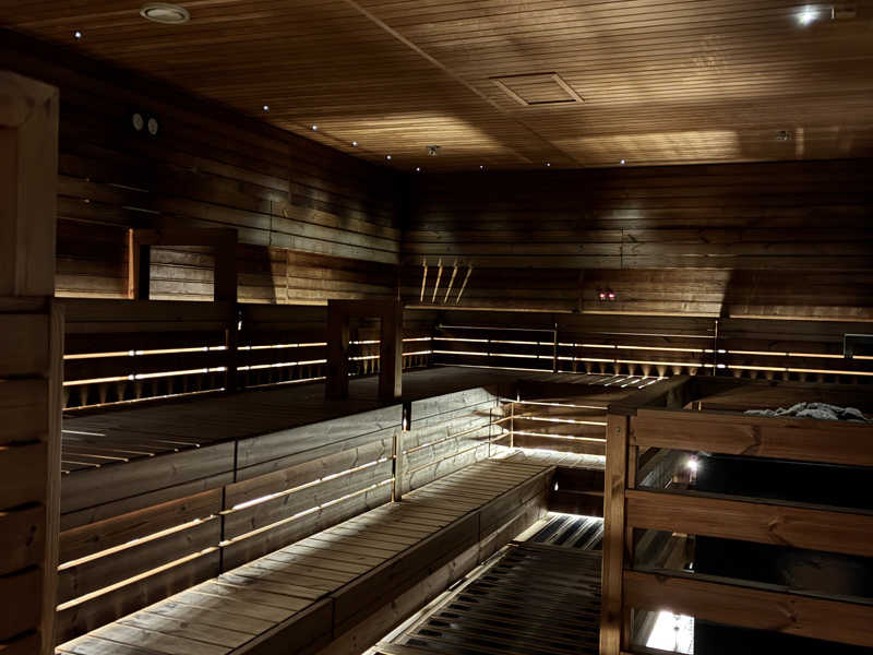 オープン凸したからなのか、誰もいない。スパはやっていない。冬はオフなのかな。3つあるサウナもミストとアロマサウナは稼働せず。暗がりのセルフロウリュサウナのみ稼働していました。ハルビアの四角いストーブに、スオミおじさまのロウリュが炸裂。いい感じです。とまぁここはサウナメインではなかったので十分。