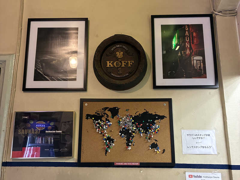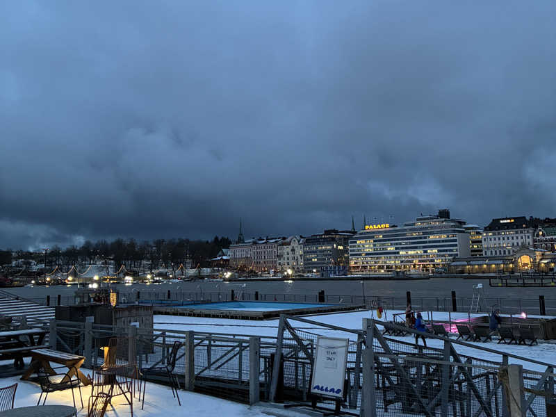 会話が飛び交いまくり、ロウリュいるかー何杯いるかー的な声が飛び交いまくるサ室。5段目と6段目の差が結構激しい!対流的にも流れやすいのかも。6段目に座ろうとしたら"ここ空いてるよん 下段はクールだからここがええで"と声をかけてくれたおじ。東京に行ったらしくて、旅行の話とか(サウナにも行ったらしい、どこ行ったか聞く前に次の話題へ)、フライトの時間がロシア経由で長くなった話など、ドイツ人もいたのでフィンランドとドイツの違いの話とか、交流もできて楽しかった。