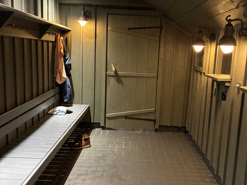 からのチェックイン。チェックイン時にサウナ用のリストバンドを受け取り、周りをウロウロしつつ16:30-18:00のスロットへ。既に薫香が遠くからでも漂ってきます…サウナ棟入り口からサウナのうんちくの説明を見つつ、アヴァント前にいるスタッフさんにバンドを見せ、手前からトイレ、女性更衣室、サウナ、男性更衣室。更衣室にシャワーあり。なおサウナ棟は隣の宿泊棟と繋がっており水着で部屋から直行することも可能でした。宿泊棟の1Fには乾燥機あり、サウナ棟には宿泊者用の小さめ(4人ぐらい)の薄暗いサウナもありました。