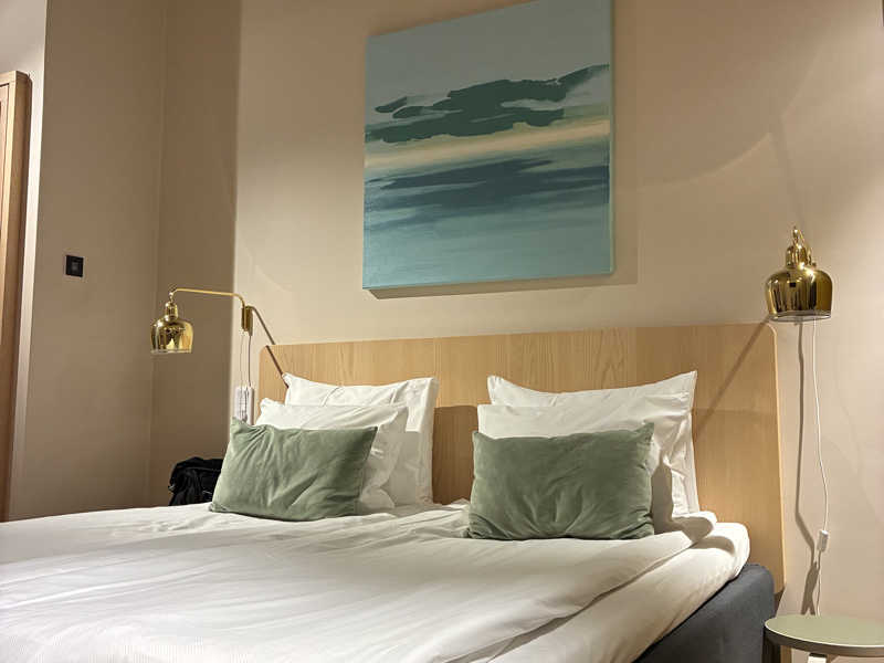 🇫🇮ラストのホテルはこちらをチョイス。素敵なホテル!部屋はパートナーの好みのピンクを基調とした部屋でございます。天井高い。トイレがクセ!