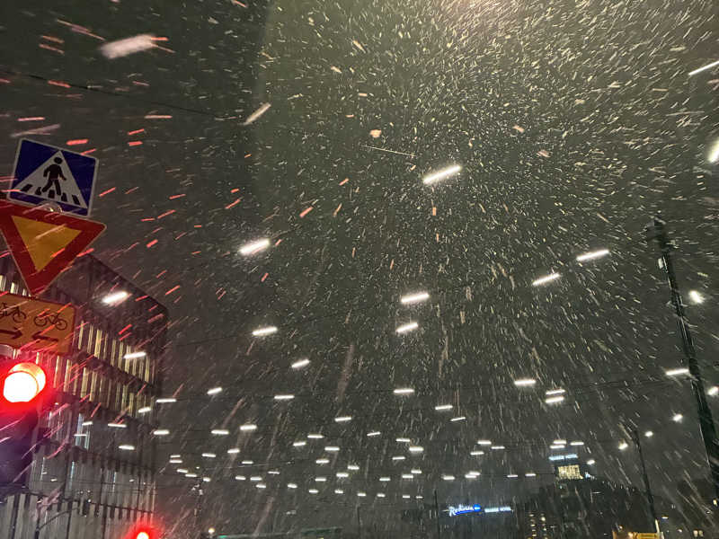 休憩で外に出ると、雪❄️そのまま座ろうとしたら、マットがあるでぃと教えてもらい薄めのビート板のようなものを使用。ライティングも少しされていて、見上げるとマンション。この風景だけでも東京に再現して欲しい。コティハルユと違って、これも素敵な景色。タオルを巻いてビールを飲んでる方たちも見える。なんという平和。