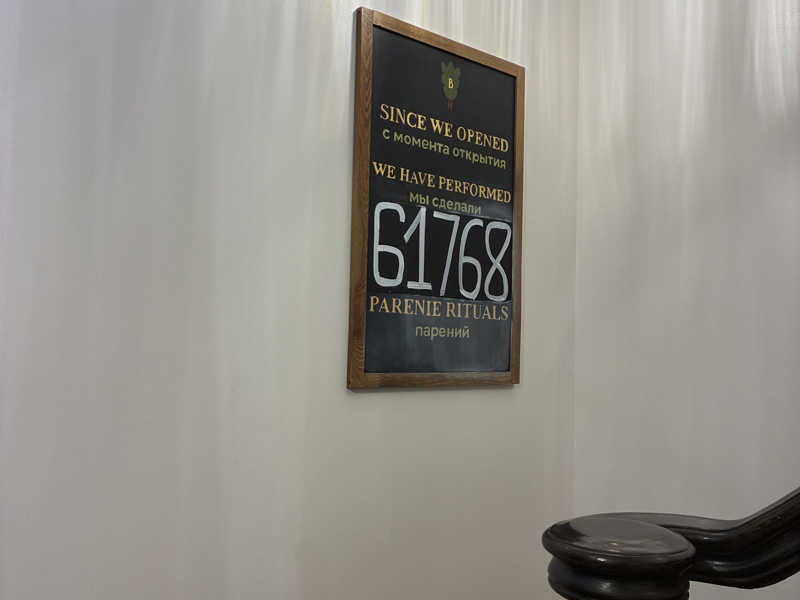 初バーニャは、まぁサウナだった。笑 広いバーニャ室。特徴的なのはストーブ。なんだかすごい豪華。エキゾチックな出立ち。説明できないので写真見て。シーツを敷いて座ったり、寝バーニャをしてみた。ロウリュ用なのかうちわも置いてあるが、店員さんがやってくれることはなかった。ドアにスチームが欲しかったら店員に言ってくれと書いてあったので、もしかしたら頼めばやってくれたのかもしれない。