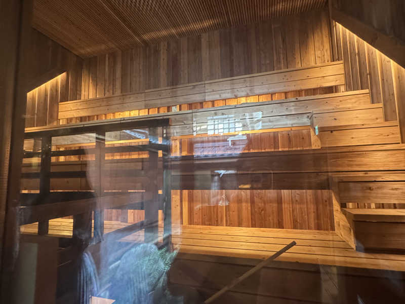 広いサウナは杉のいい香りとロウリュして、座ってみると何だかスースーする。