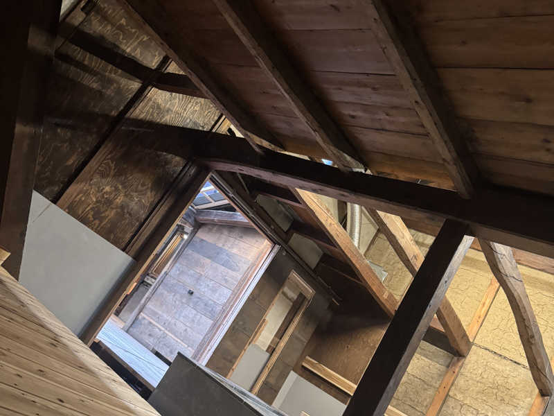 まだ看板はなく、室内に入ると吹き抜けリノベで