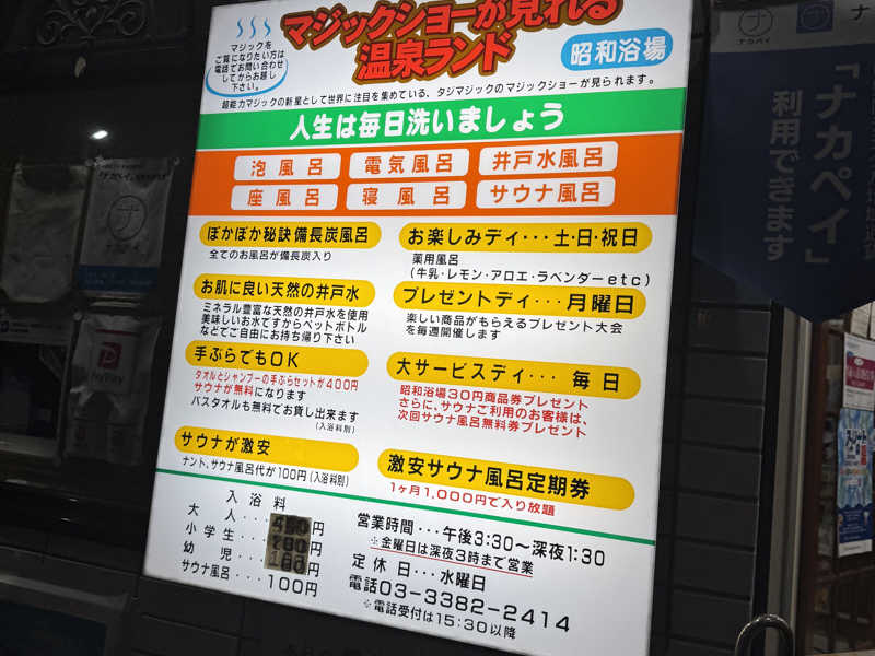 いつか男湯のほう入ってみたいなと思いつつ、水曜には行かなそうなので、レディースデーに