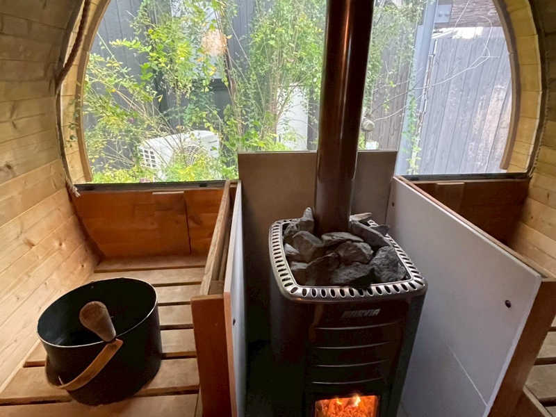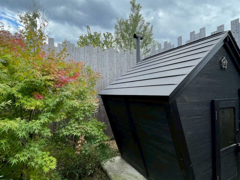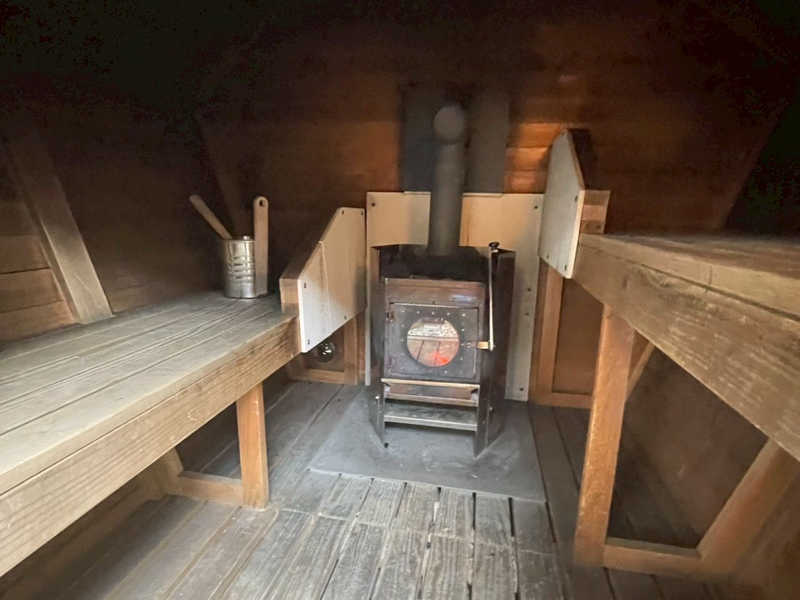 薪焚べて、ししおどしロウリュされると程よく熱くいい。
