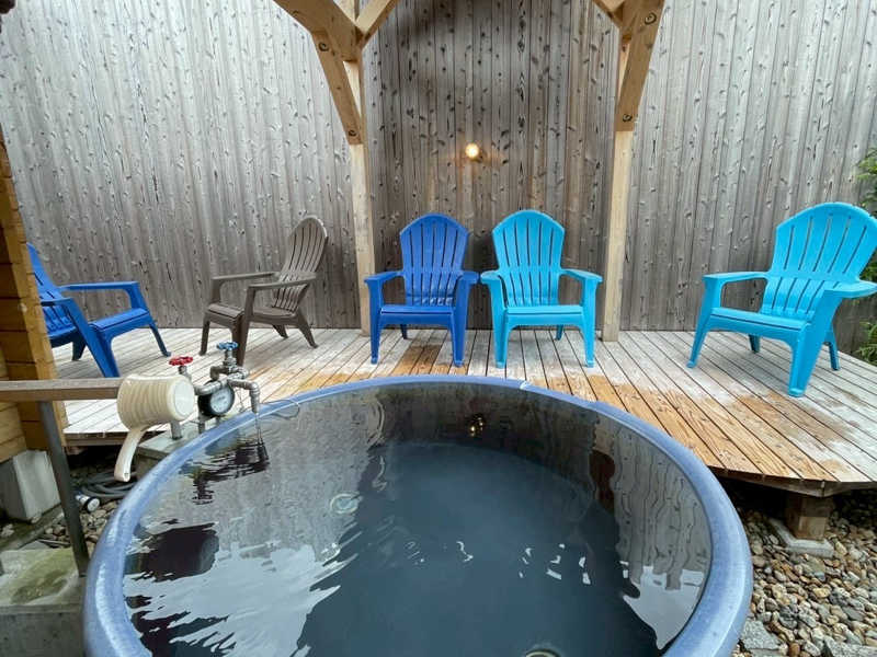 ポンチョきてととのう。貸切プライベートなのに贅沢に3セットほどして次。