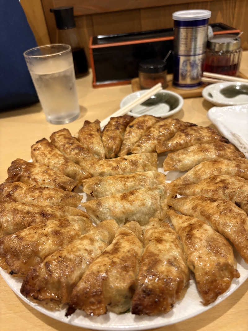 夕飯は飯塚温泉に行って円盤餃子食べました🥟