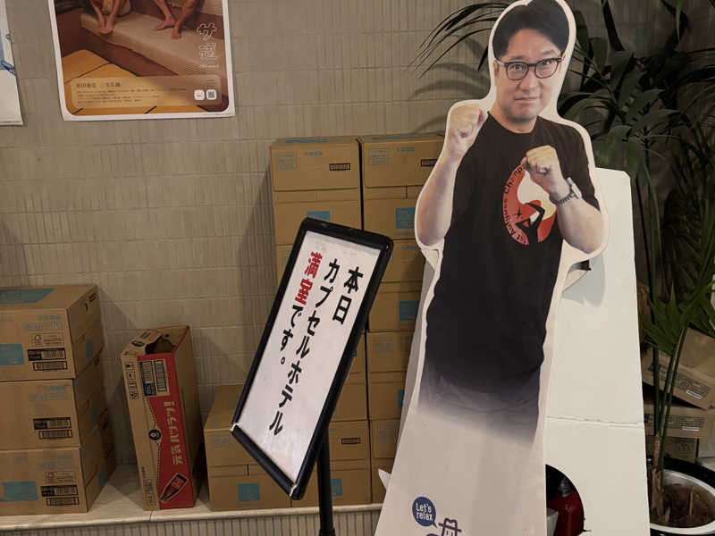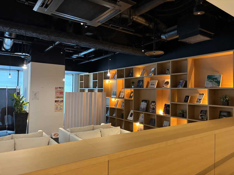 2階で降りて奥にあるくと階段降りて、暖簾や扉なく急に脱衣所でややびっくりです🙄浴室に入ると、夜中なのに明るいです!天井は色とりどりのガラスとなってる部分がありなんかいいですね🌈大きめのお風呂に入って、まずはドライサウナへ!すでにサウナマットが敷かれていて、もらったタオルをおしりにひきますがあつい、足裏もあつい🔥雰囲気は薄暗くてレンガと木の感じがよくて、テレビもなくしっかりあつくなります!そこから水風呂入って、内気浴スペース①へ。なんだかギリシャ的な雰囲気の中、寝転ぶイスがあります!そしてその背後に巨大な扇風機がふたつ!!迫力すごいです!すっかり気持ちよくととのいます😀続いてセルフロウリュサウナへ!やっぱりけっこうあつい!ロウリュする取手にタオルが巻かれてますが持つのもあつい🔥同様に雰囲気はよくしっかり汗だくになり、水風呂へ!となりにぬる目の水風呂もあり、冷冷交代浴楽しみます😆そして内気浴スペース②へ。こちらは天井からミストが降ってくる仕掛けであり、プラ椅子にすわりミストがしとしと降り注ぎ別の気持ち良さをもたらしてくれました☔️いろいろ楽しいことが詰まっていていいサウナでした!カプセルもみんな静かに使っていて、安心して眠れましたー!飛行機間に合ってよかったです✈️