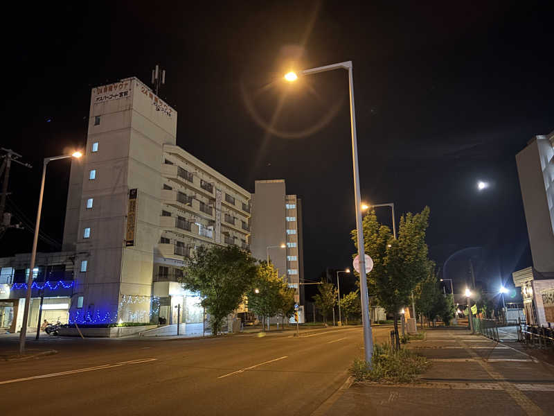 一言:旭川に戻り天気もいいし、神楽にしましたー!夜でも人はまあまあいるけど、奥の高温サウナでしっかり蒸されます😀ここはホントなぜか湿度が高くて、いい汗かけます、みんなかいてます😆やっぱり手前の低音サウナのおかげでしょうか。青竹踏みの水風呂でリラックスし、外気浴へ。ここは人があまりいないようなら東屋の柱を背もたれにして足を伸ばしてととのうが気持ちいいんです✨きょうは月がキレイにみえて、地球は秒速400mで自転してるんだなとか、太陽の周りを秒速30kmで公転してるんだなとか、そんなこと考えながらボーっと月を眺めてましたー🌕さてと、疲れも癒えたしまた1週間頑張っていかなきゃです!