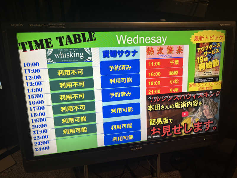 ロウリュサービスの時間を調べていなかったため参加できず、次回は受けれる時間で入館したいと思います!
