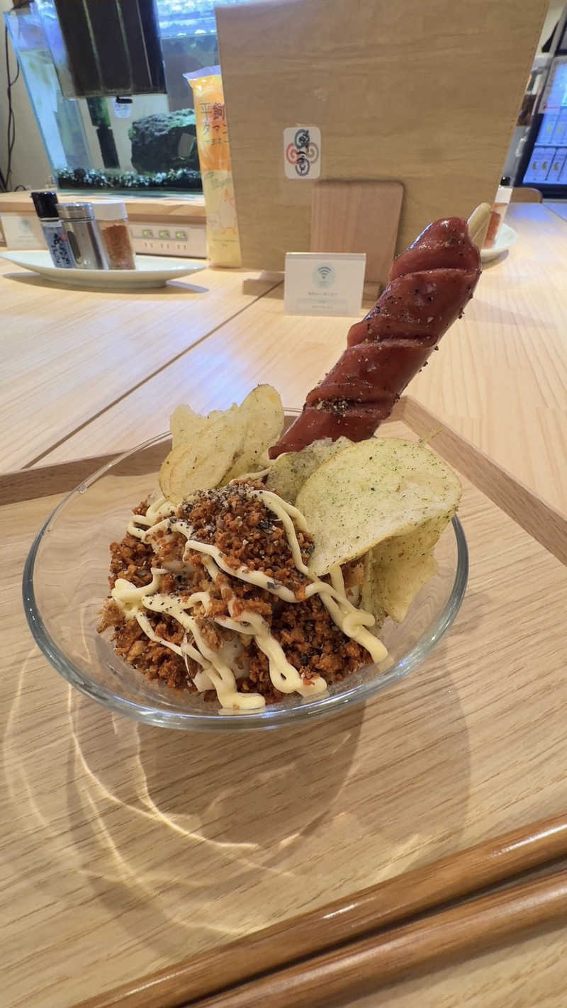 ポテサラにマッカラが刺さっていて、そこへフライドオニオン&ガーリックという暴力的なまでの罪深さ。色々と想像以上で、うどん前の軽い腹ごしらえのつもりが、