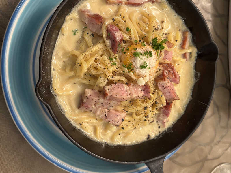 やはりサウナ後は味が濃いものということでカルボナーラ。