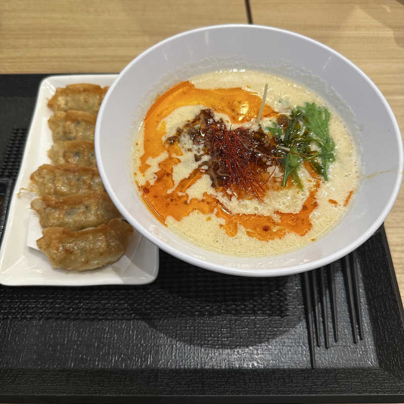 しっかり整った後はサ飯で豆乳担々麺と揚げ餃子。