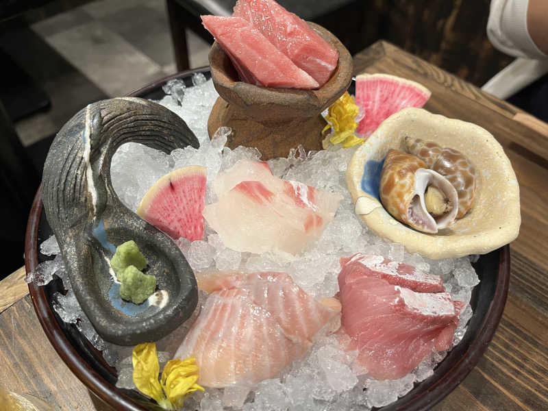 お通しが刺身盛り合わせという、ストロングスタイルなお店でした❣️