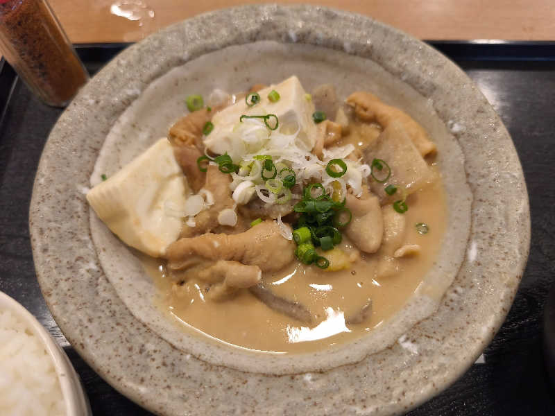 。店員さんがランチメニュー回収に来た時、物足りないから、もつ煮定食も頼んじゃった。コーラもいつもより多めだし良い感じになりました。