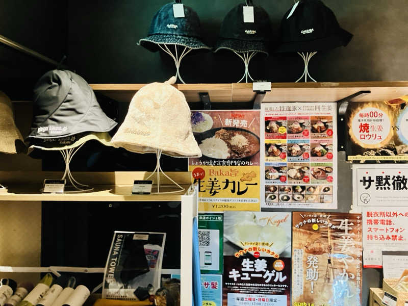 サウナは浅めの三段。暗めの照明。温度はかなり熱く感じる。と言うのも全てのセットがたまたまスタッフロウリュ、オートロウリュに出会ったので常にロウリュを浴びている状態ww ベンチの段も浅いので下段でも十分熱い!生姜の香りに満たされて最高です。