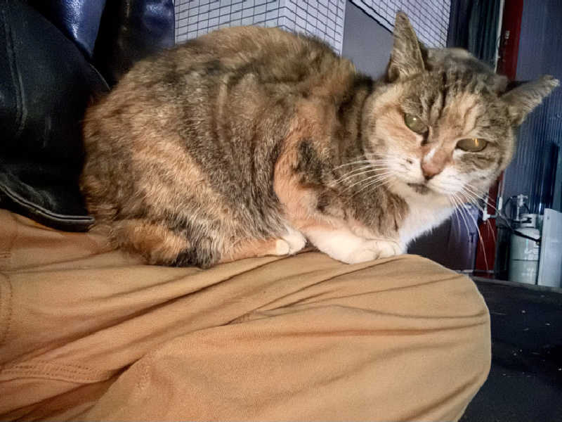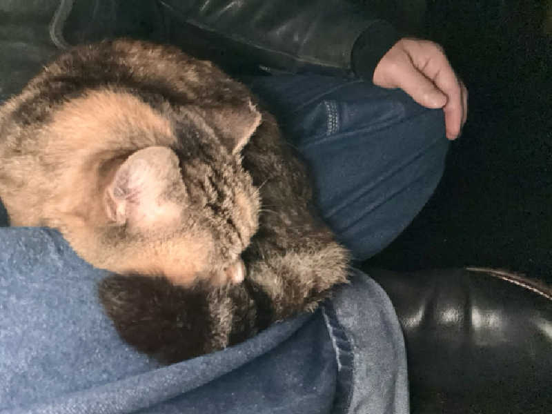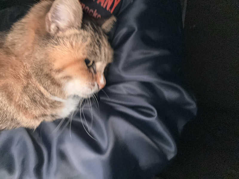 寒くなってきた途端にすぐ膝に乗ってきて、降ろしてもまたすぐ乗ってきて、ちゃっかり寝る体勢までとってくるとても甘えんぼなP様でした☺️