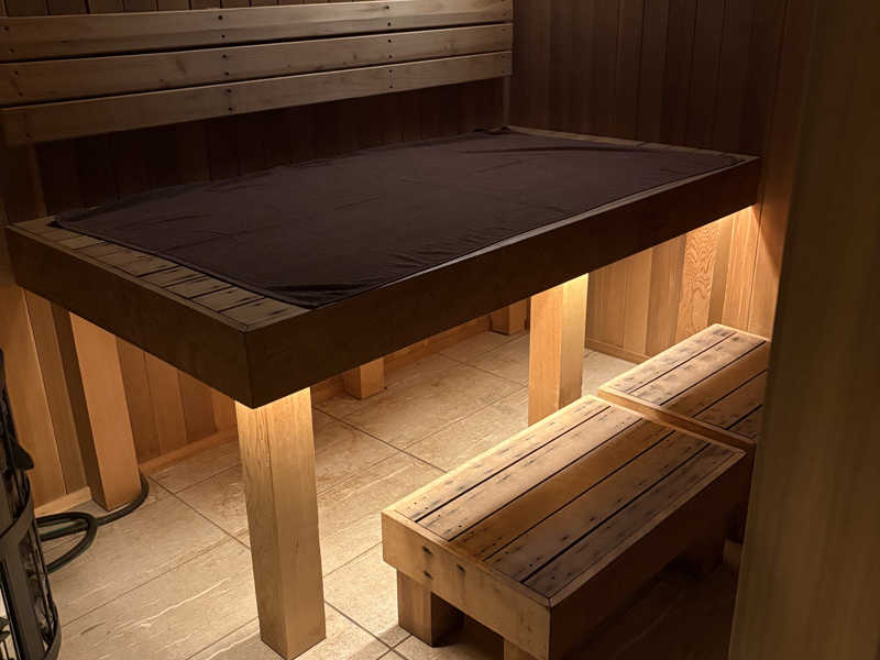 サウナ室は座るところが広めで人数によっては寝ながら入ることも可能だと思います!セルフロウリュも可能で、週によってアロマの香りも変わるみたいです!