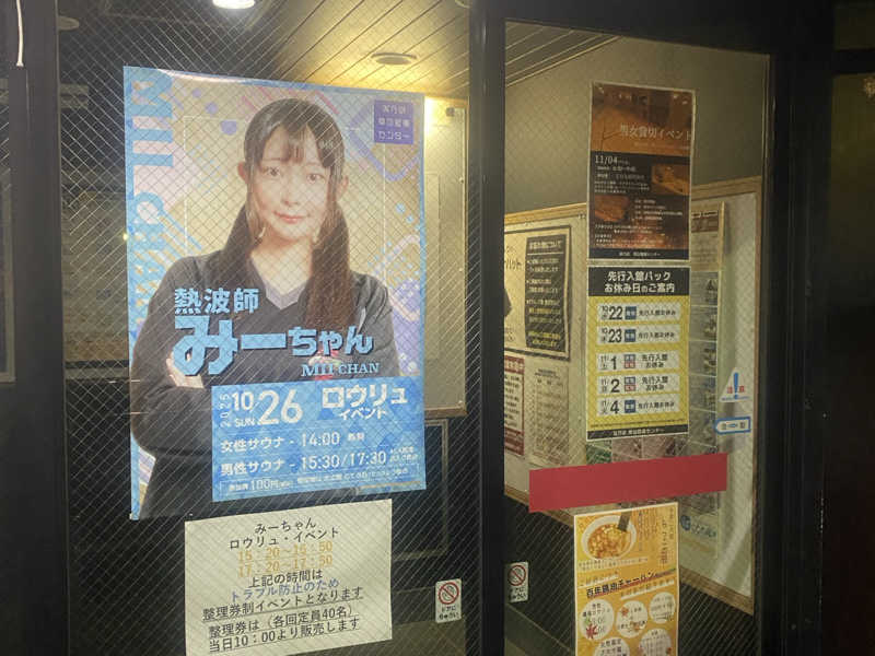 サ室の扉が壊れているそうで、半開きのまま閉まらず…。当然、サ室も背中から冷気を感じ、ただでさえ温度低めなサ室が輪をかけて体感温度も低め…。