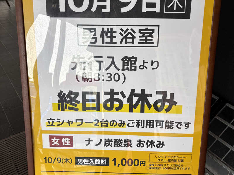 夜勤明けで巡回後こたろと退勤同じだったから、行っちゃう??って事で、「TOBUととの湯スタンプラリー」開始!まずは「草加健康センター」【以下SKC】へ。獨協大学駅下車。テクテク歩く事約20分。新4号を越えて歩いて行くと、こんな所にあるの!?と思うくらいな場所に突如出現!さっそく表玄関に向かうと…ん?何か看板が。「男性浴室 終日お休み」…マジかー!!SKCの月間カレンダーに書いてあった…確認不足でした。でも、まぁ、サ活にはこういう事は日常茶飯事だから気持ちを切り替える!「イキタイ時にイキタイ施設に行く」これがモットー!草加駅までの送迎バスも出発しちゃったし、こたろと作戦会議のために、併設されてる「らっこ食堂」で「ラッコ飯」を食べる。ここはSKCと同じ物を食べられる。まぁ、せっかく来たし…。食べながら作戦会議して…よし!「竜泉寺の湯」まで歩いて行こう!となり、約3.5km先を目指すことになった!結局、30分弱で到着。さっきの「ラッコ飯」がお腹を襲う。トイレから生還し、受付を済ませてさっさと清めて→下茹で。しかし、平日の昼間なはずなのに、こんなに混んでるの!?とびっくり。洗い場はほとんど空いてないし、炭酸泉も詰めて入らないと入れない…。パッと見て、ととのいスペースの椅子も空いてない…。SKCが休みだったからこっちに流れてきたのかもしれないけど、やっぱ竜泉寺の湯ってすごいね。それでも広いからサ室待ちとかにはなっていない。