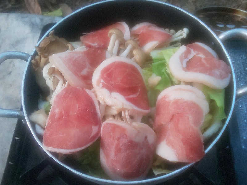 3セット目、雨は降っているけれど雷の音はせず、ぬれるのは同じと露天へ