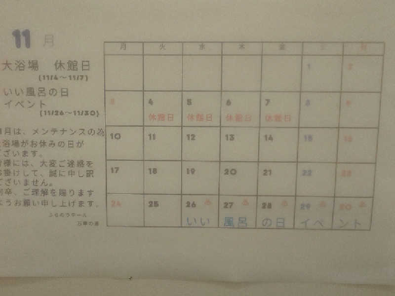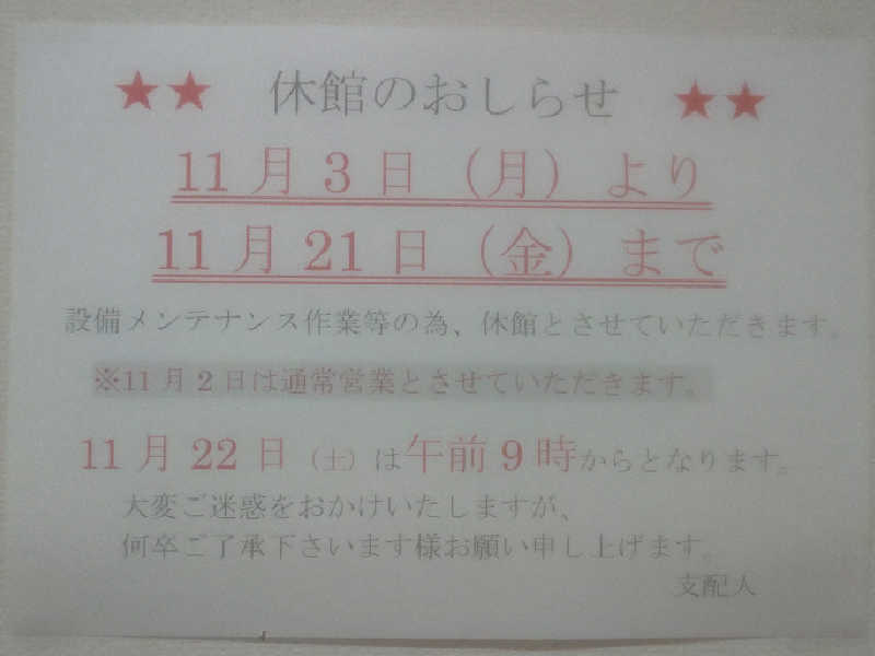 追記:11/4~7、メンテナンスで休館日だそうです(本日ギリギリセーフ😅)